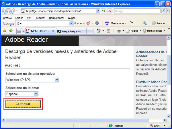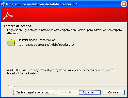 A continuación instalaremos en nuestro equipo el lector de documentos PDF "Adobe Acrobat Reader", aplicación necesaria para poder leer documentos que hayan sido generado en el formato PDF.