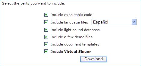 Cuando descarguemos la aplicación de su página web no debemos olvidarnos de descargar todas las opciones (entre las que se encuentra Virtual Singer) y seleccionar Español como archivo de idioma.