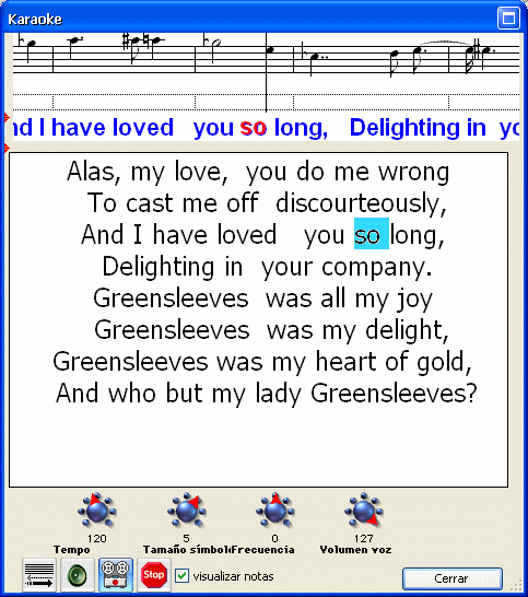 Aparecerá entonces una ventana reproduciendo el archivo de karaoke: