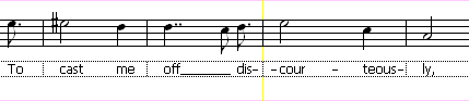 Tras introducir toda la letra siguiendo las indicaciones anteriores y la relación entre notas y sílabas cada frase quedaría del siguiente modo:
