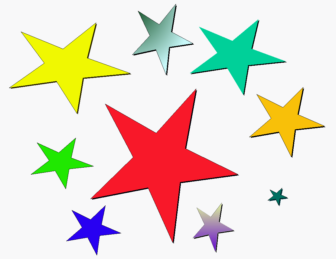 Actividad 2.5: Crea un proyecto nuevo y nómbralo Proyecto2.5. Arrastra una estrella desde la pestaña Provisiones, y duplícala varias veces. Además, cambia el color de las estrellas y su tamaño.