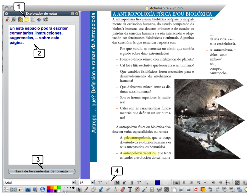 Usa el explorador de notas para anotar aquellas indicaciones o instrucciones que estimes oportunas para los usuarios del rotafolio