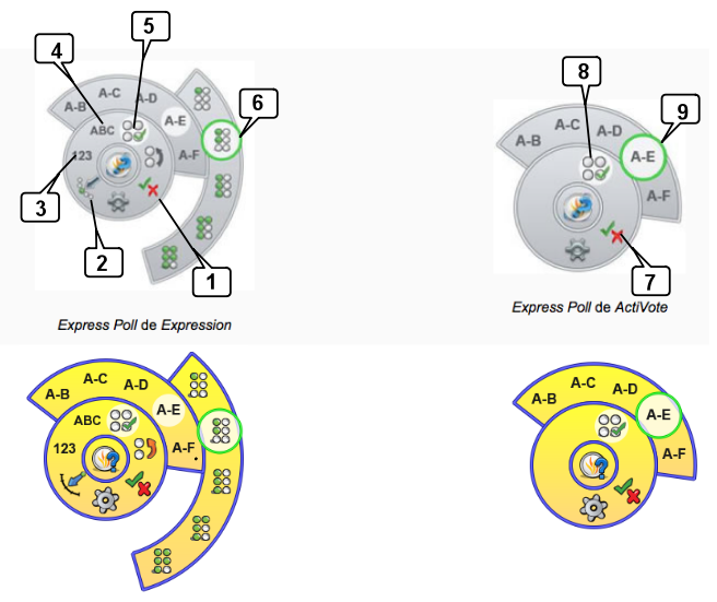 Cada alumna/alumno dispondrá de un mando en el que tecleará sus respuestas: ActiVote permite elegir 1 de entre un máximo de 6 respuestas posibles o respuestas de verdadero-falso, o de si-no. ActivExpression posibilita introducir respuestas númericas, textuales, verdadero-falso,… de modo similar a como se hace en un teléfono móvil para escribir un SMS pudiendo introducirlas cada alumna/o a su ritmo: la pregunta aparece en la pantalla de su mando e introduce su respuesta.
